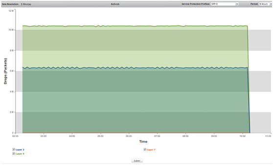 FortiDDoS不断记录网络流量情况,生成实时图表,方便网络管理人员快速了解目前网络运行情况,定位攻击来源。查看实时图表的时间段最短可以是1小时,最长可以是1年。同时,FortiDDoS也可以根据日志生成多种历史报表。